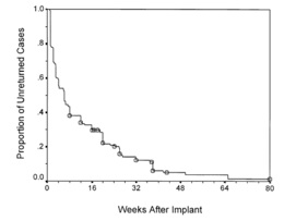 Fig 5. Proportion of men who fail to return to their normal urination over time after seed implantation for prostate cancer