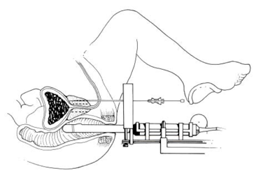 Fig 3. View of needle insertion into the prostate with Ultrasound probe in the rectum